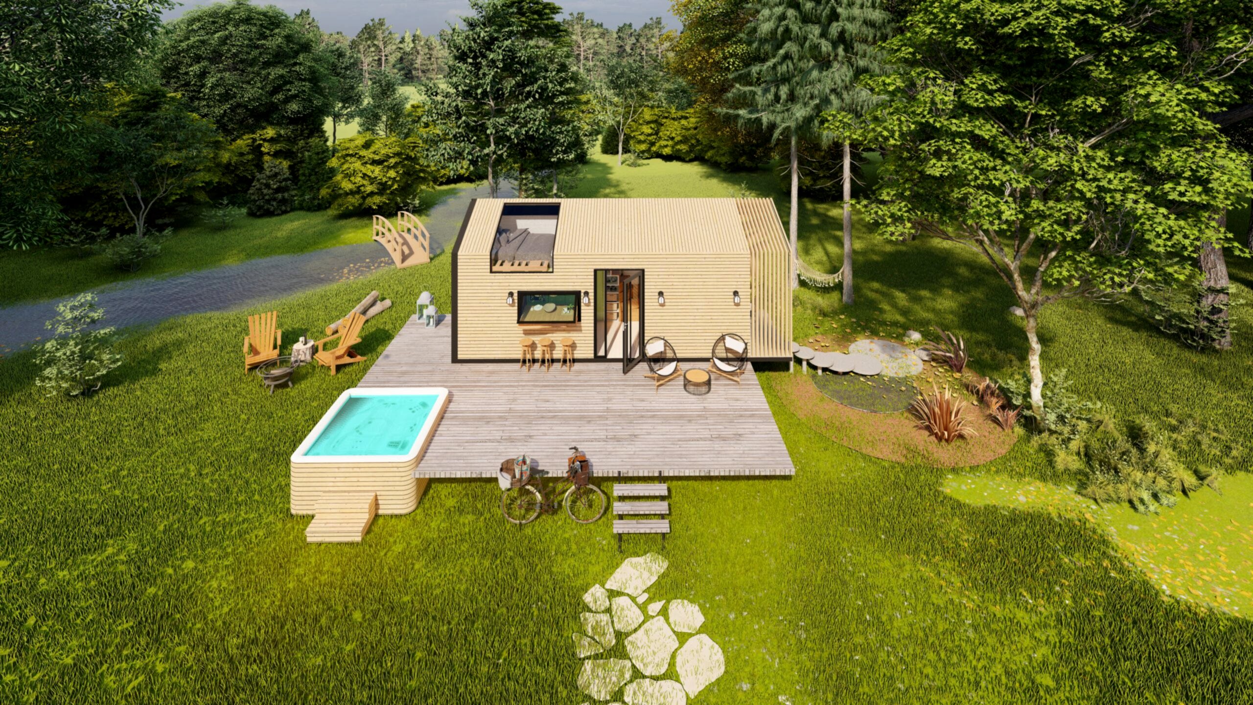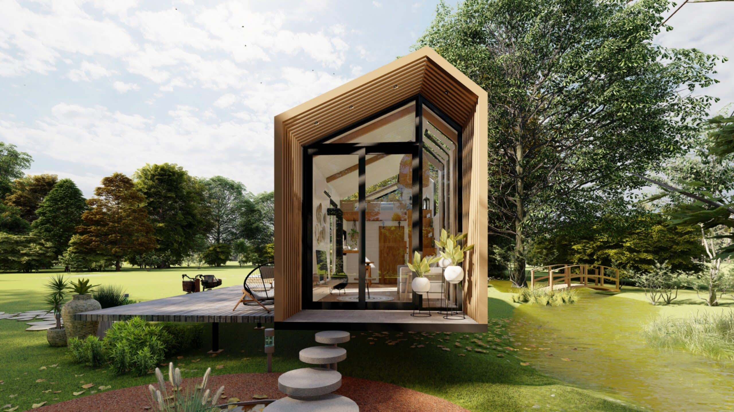 Boho Chic Tiny House 7.00 m X 2.55 m ebatlarında, 27 m2 , loft katlı yatak odalı olarak tasarlanmıştır.